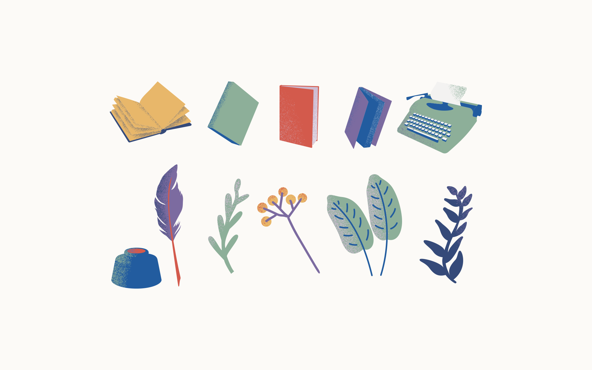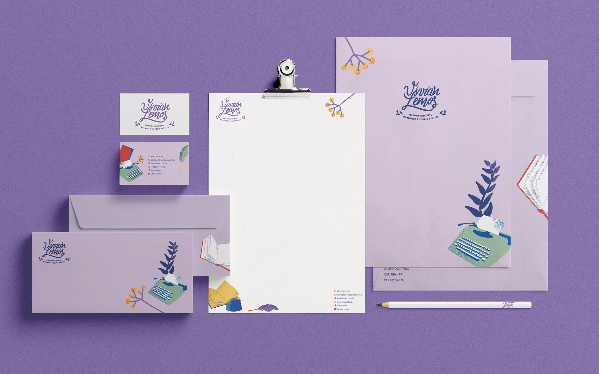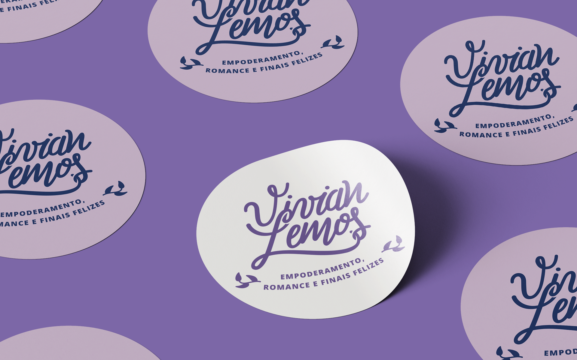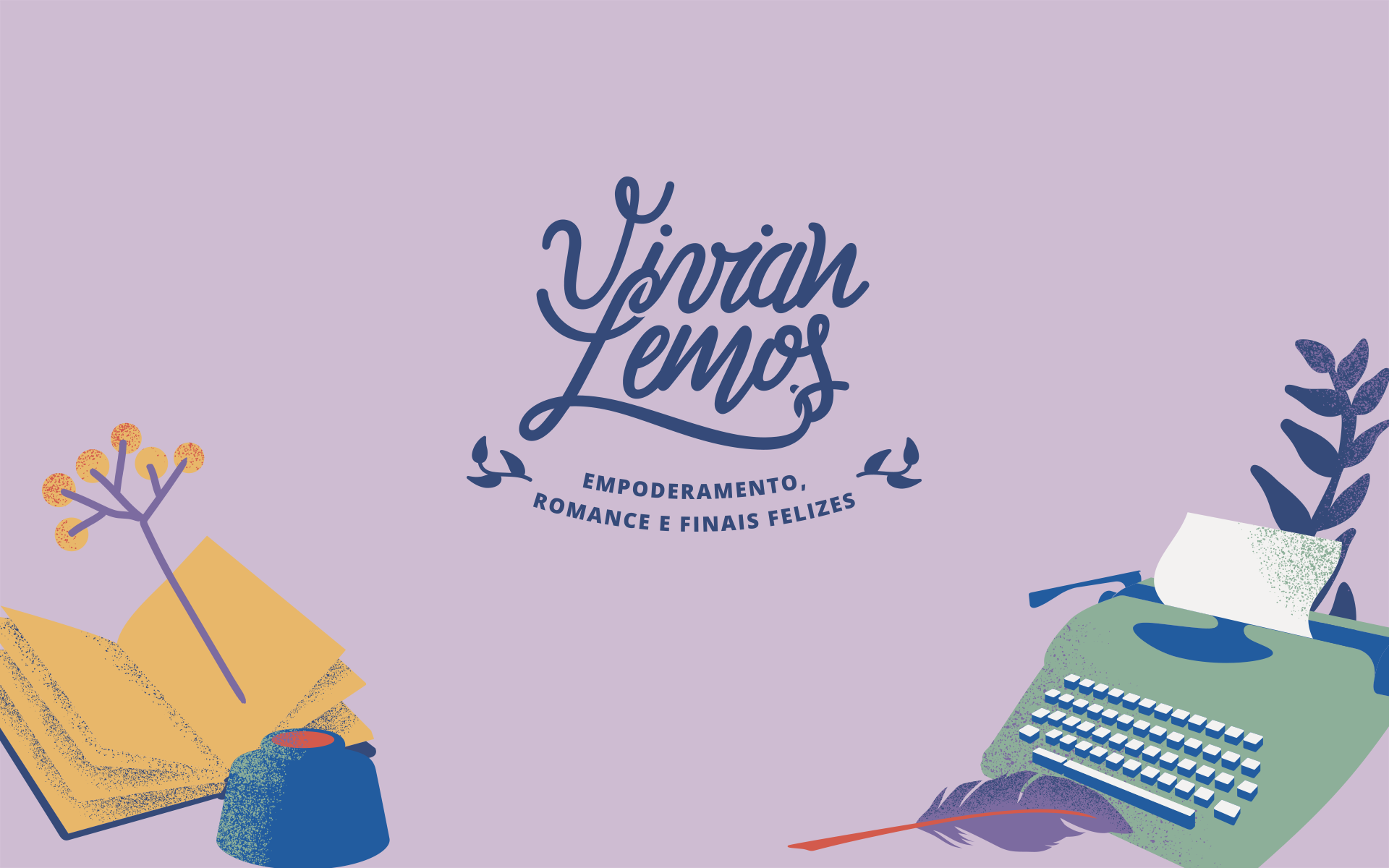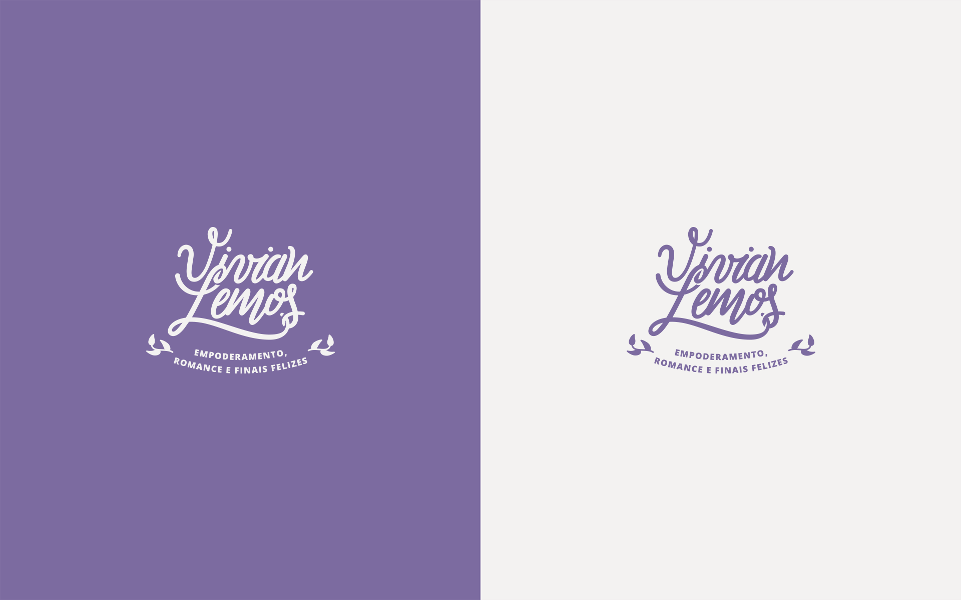 A logo for a novelist who writes about romance and empowered women. The visual identity has romantic and florals elements mixed with the purple feminism palette colors.